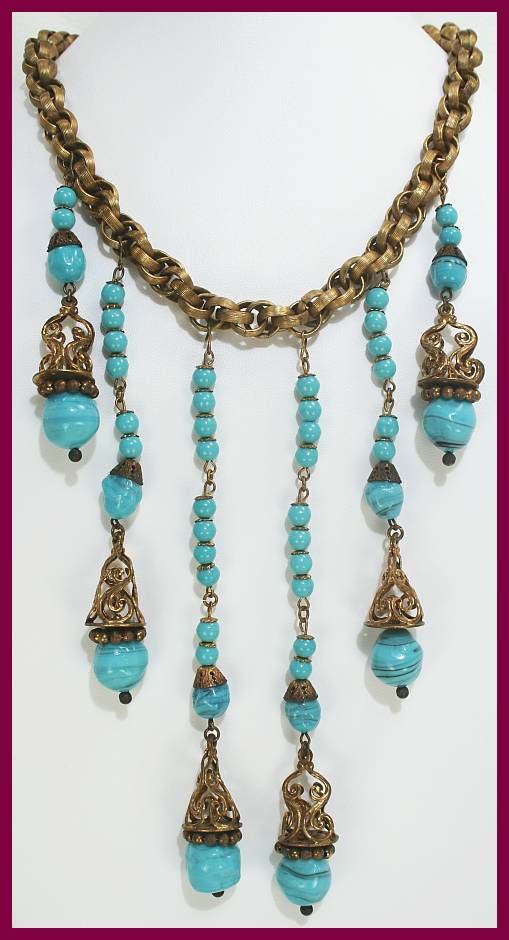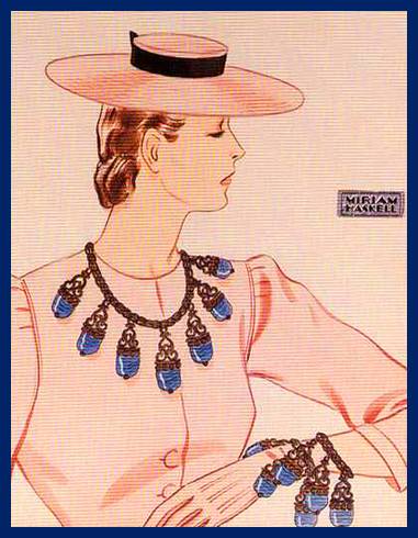concise collector's guide to Miriam Haskell Jewelry. Wonderful illistrations, hosted by Morning Glory Antiques & Jewerly on Jewel Chat Magazine |