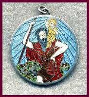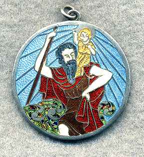 MARGOT DE TAXCO | PENDANT, St. Christopher with Child. Very Rare and Elaborate Enameling in at least Seven Colors. Signed Margot de Taxco, Design # 5587. Very Good Condition. Measures 1-3/4". |