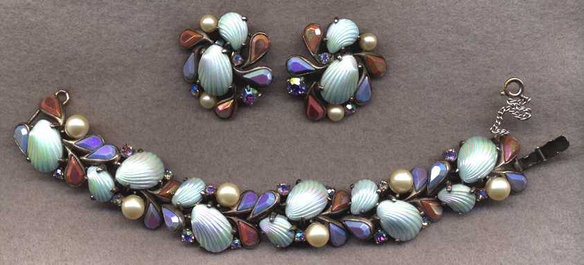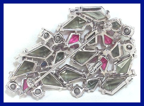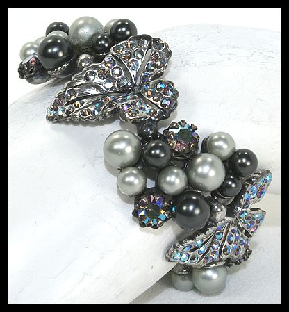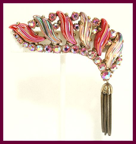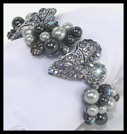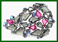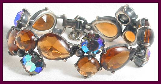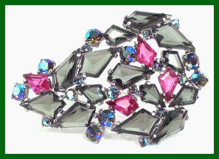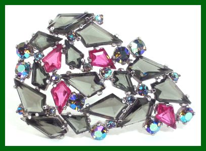 stones in Smoky Topaz and Fuchsia colors, with AB accents; silver tone