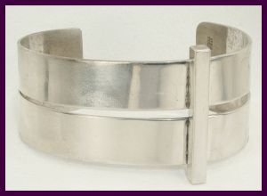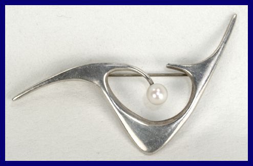 freeform design; great 3 dimensionality. Marked Steig Sterling. Measures 2" x 3/4". Very Good Condition. #2563, $225.00 ![]() |
